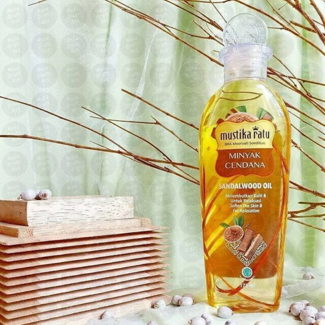 Mustika Ratu Minyak Cendana / Sandalwood Oil is Made from selected Sandalwood Oil extract to give fragrance and keep skin soft. It is also contain of Secang Wood (Biancaea sappan) as an antioxidant.