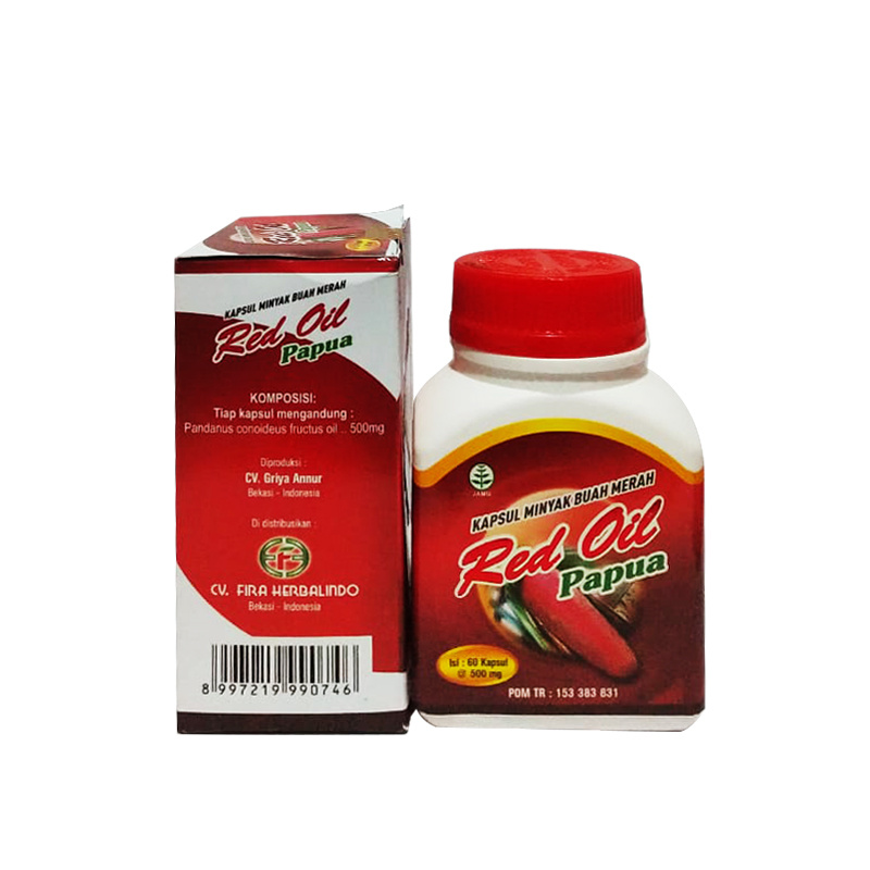 Red fruit / Pandanus Conoideus originating from Papua is processed to take its oil which is beneficial for health. With the technology of processing natural ingredients that are increasingly advanced today, the oil from red fruit is packaged in capsule form to make it easier to consume.